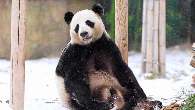 【熊猫一刻】大熊猫雪中独享美食